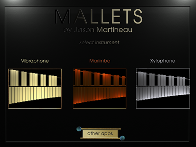 Each instrument has dynamic bars that are color-coded, as well as a pitch overlay grid so you can see the names of the notes. You can play glissandos, chords, melodies, anything you can do with a real-world pitched percussion instrument, with a range of two and a half octaves. All three instruments were created with beautiful 3d graphics and carefully tailored sound samples. The vibraphone also includes a pedal feature, with a sustain and tremolo effect. Learn to play these timeless instruments, and let your fingers be the mallets!