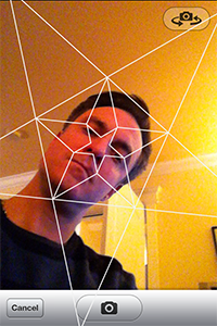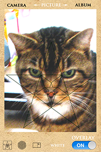 With this application, you can explore these hidden relationships. Using any image from your photo album, or one you take on the spot with the camera, you can overlay the geometric template, which contains this "sacred" geometry (the golden ratio - phi - in the pentagon star). You can then scale the overlay as you see fit, and scroll it into position, to test and reveal these proportions, and judge for yourself. Try as many people (or animals) as you like.
